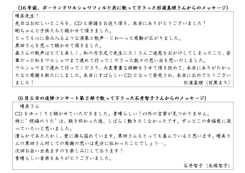 Bookで耳にした事がきっかけとなりボーナストラックに入れる事を思い立ち、5月5日の追悼コンサートではコーラスハルミオンで「祝福のうた」を初めて