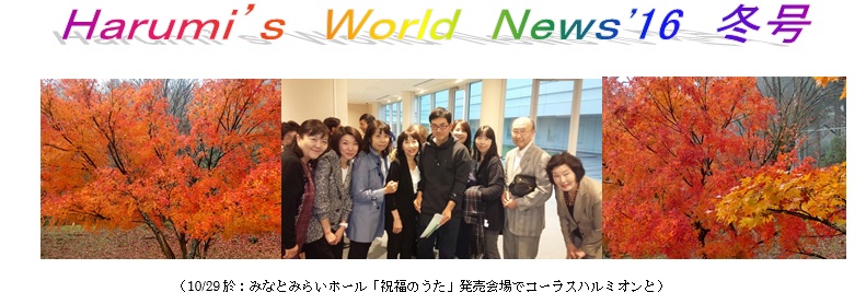 去る10月29日、横浜みなとみらいホールに於きまして、横浜YMCA混声合唱団創立60周年記念第55回定期演奏会が開催されました。その最終ステージで、望月裕央先生の指揮で「高橋晴美 愛と希望の世界」と題し、4曲が歌われました。